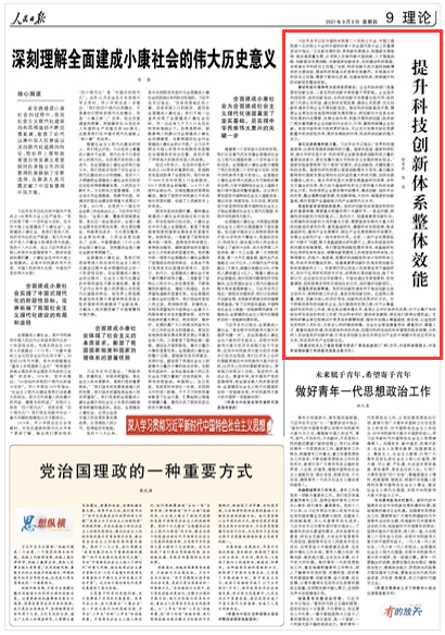 【人民日报】徐宗本 陈光:提升科技创新体系整体效能