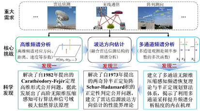 频谱分析旨在基于信号时域或空域采样揭示其频域信息,是当代信息技术的关键要素,也是雷达侦测、无线通信等国家重大需求和前沿竞争领域的核心基础,这些领域的关键技术突破均需要从极少采样准确揭示高维、多通道连续频谱信息,迫切需要频谱分析基础理论与算法的根本性变革。