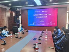 随后,队伍移步至泓理楼,探访了西安数学与数学技术研究院的“西交-华为数学技术联合实验室”。在这里,学生们首先与课题组的优秀研究生进行了面对面交流,亲身体验了科研工作的真实面貌。紧接着,薛江教授和李慧斌教授分别带来了两场精彩的科普报告。薛江教授深入浅出地讲解了数学在通信、国家重大需求中的关键应用,展现了数学作为科学基石的力量;李慧斌教授则聚焦数学在人工智能领域的广泛应用,为学生们描绘了一个由算法驱动的智能未来。最后,一行人参观了西安数学与数学技术研究院展厅,感受数学应用成果带来的震撼。