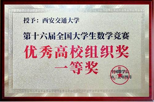4月17日,第十六届全国大学生数学竞赛决赛获奖名单正式公布。西安交通大学学子斩获全国一等奖8项、二等奖6项、三等奖7项,一等奖获奖数与总获奖数均居全国高校第七位。学校荣获优秀组织奖一等奖。能动A2102班王奕博在非数学专业A类决赛中获满分。