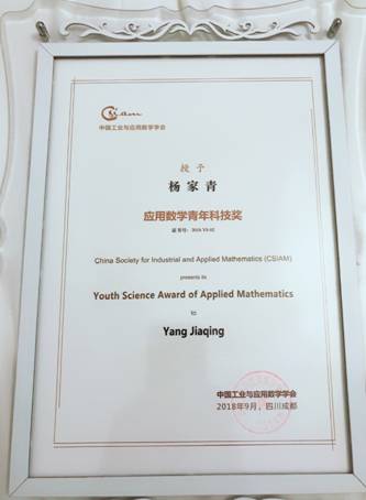 我院杨家青副教授荣获中国工业与应用数学学会CSIAM应用数学青年科技奖