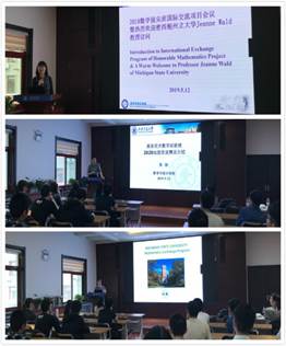 应必赢集团网站与钱学森学院邀请,2019年5月11日-13日美国密歇根州立大学(Michigan State of University)数学系副系主任Jeanne Wald教授来访西安交大开展交流活动。5月12日上午,Jeanne Wald教授为数学试验班学生进行美国密歇根州立大学国际交流项目宣讲,必赢集团网站副院长、数学试验班项目主任易媛、数学学院朱旭、数学试验班2016级、2017级学生参会,会议由数学试验班项目秘书高静主持。