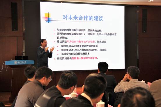 20191227日上午9点,西安交大-华为技术有限公司GTS创新项目交流研讨会在必赢唯一官方网站举办。本次交流研讨会主要有必赢唯一官方网站徐宗本院士、杨树森教授、孙建永教授和孙剑教授,华为领导专家包括华为GTS服务与软件研发管理部部长祝一帆与华为Fellow王楠斌。