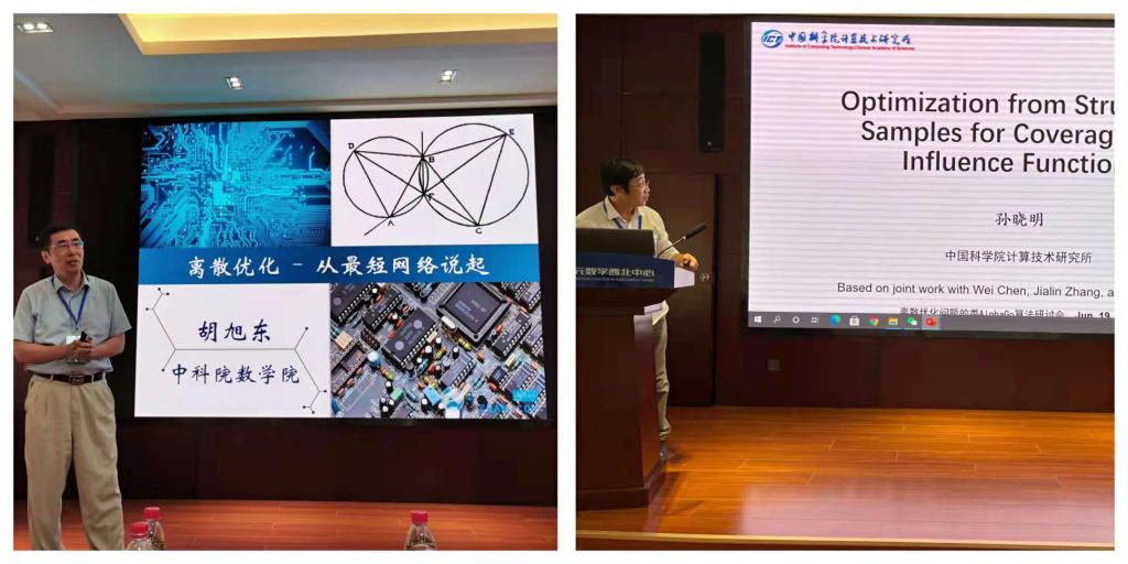 随后,中国科学院数学与系统科学研究院胡旭东研究员、中国科学院计算技术研究所孙晓明研究员、中国科学院数学与系统科学研究院闫桂英研究员、中国科学院大学韩丛英教授、中国科学院自动化研究所张俊格副研究员、中国科学院数学与系统科学研究院陈旭瑾研究员、华东师范大学吕长虹教授、西安交通大学孙建永教授、西北工业大学徐根玖教授、北京工业大学徐大川教授等运筹学领域的知名专家作了精彩报告。报告内容涵盖了组合优化问题的机器学习求解算法研究、从最短网络看离散优化的发展、实际应用中的离散优化问题、次模优化理论与算法、无人机群智能协同对抗的动态博弈及算法、图解数据、智能博弈决策技术进展等。与会青年学者认真聆听了报告,与专家进行互动交流,现场气氛活跃而热烈。