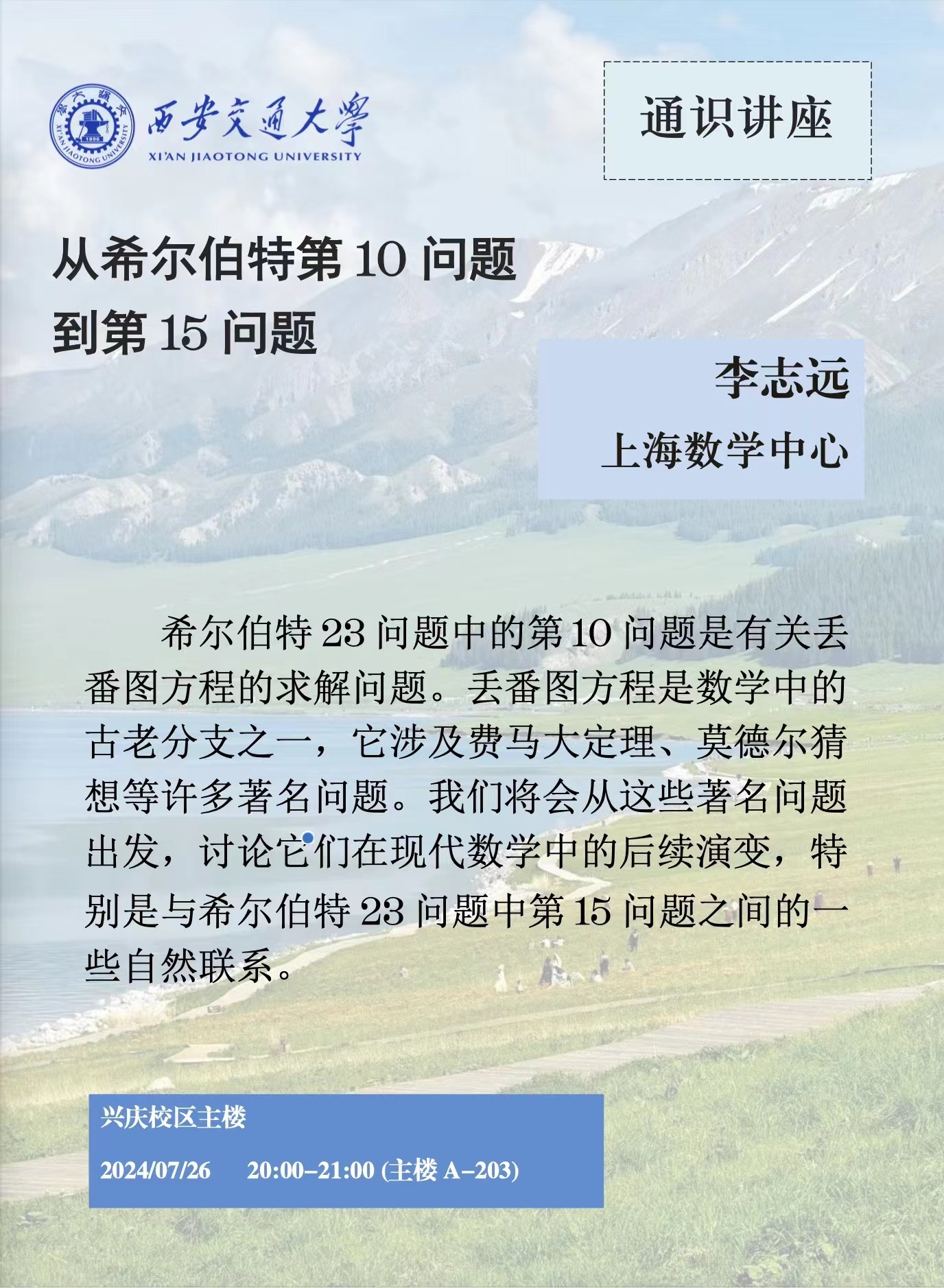 【通识讲座】 上海数学中心李志远 (2024.07.26)