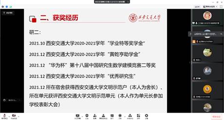 On the evening of April 12, the school of mathematics and statistics held an online conference on "May 4th appraisal and defense of the school of mathematics and statistics in 2022". Li Yibao, deputy secretary of the college, Zhang Ruoxin, Secretary of the Youth League Working Committee, and part-time counselors attended the meeting and served as judges.