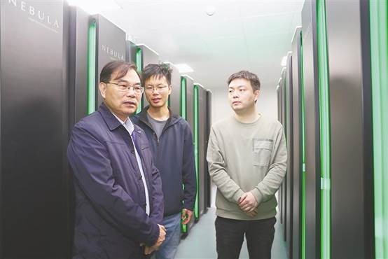 4月1日,徐宗本(左一)在大数据算法与分析技术国家工程实验室与团队成员进行交流探讨。 陕西日报记者 肖阳熠摄